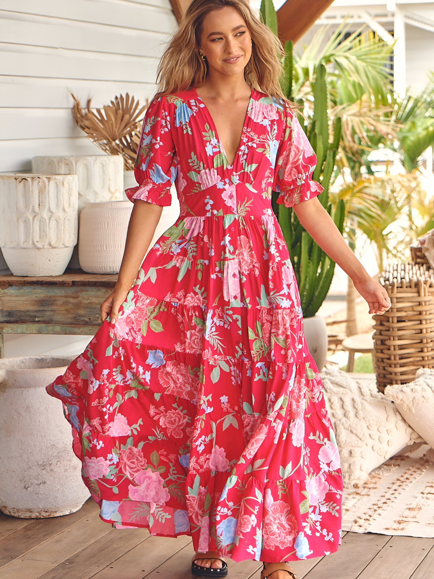 Bregje™ | Bloemen Cut-Out Maxi-jurk