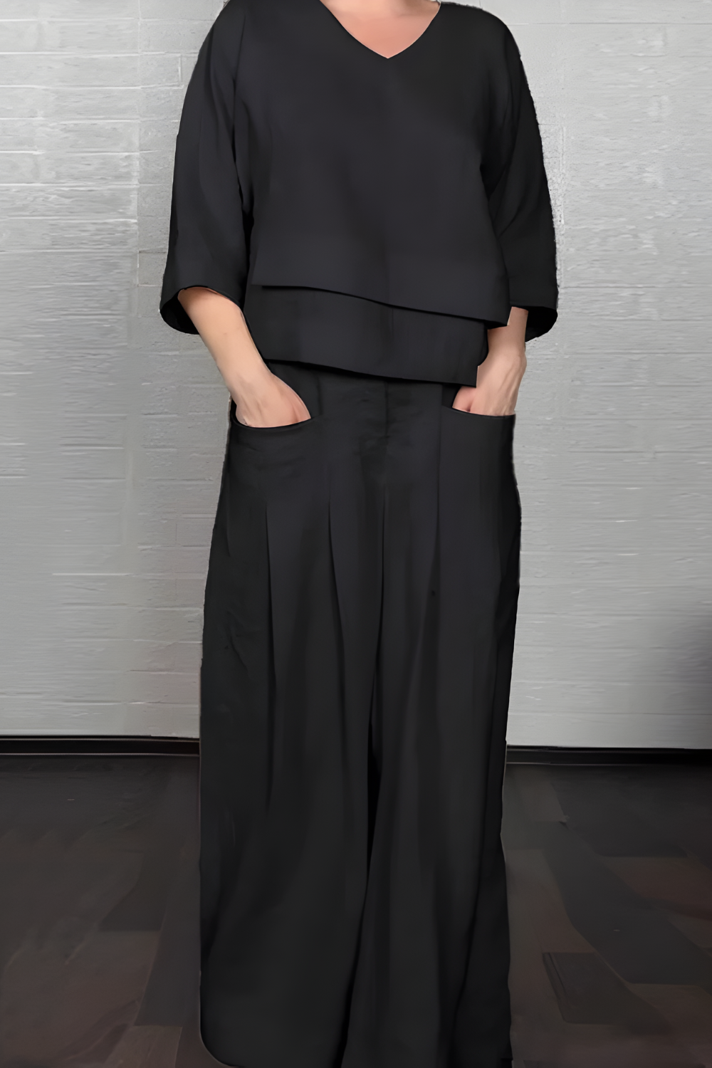 De Esmee™ | Comfortabele Set is ontworpen voor vrouwen die houden van eenvoud, zachtheid en een relaxte pasvorm. Met haar losse silhouet en soepele stof is deze tweedelige set perfect voor ontspannen dagen, thuis of onderweg.