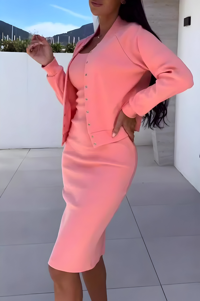 De Fleur™ | Comfortabele Midi Jurk met Bijpassend Vest biedt een perfecte mix van stijl, comfort en veelzijdigheid. De aansluitende jurk met spaghettibandjes en het losse, bijpassende vest zorgen samen voor een elegante, vrouwelijke look – ideaal voor zonnige dagen of frisse avonden.