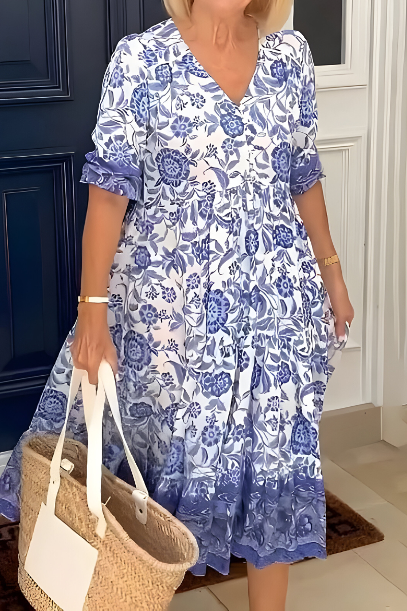 De Julia™ | Luchtige Zomerjurk is ontworpen voor vrouwen die stijl en draaggemak willen combineren tijdens warme dagen. Met haar vrouwelijke pasvorm, zachte kleuren en ademende stof is deze jurk perfect voor een dagje uit, vakantie of een zomerse lunch in de zon.