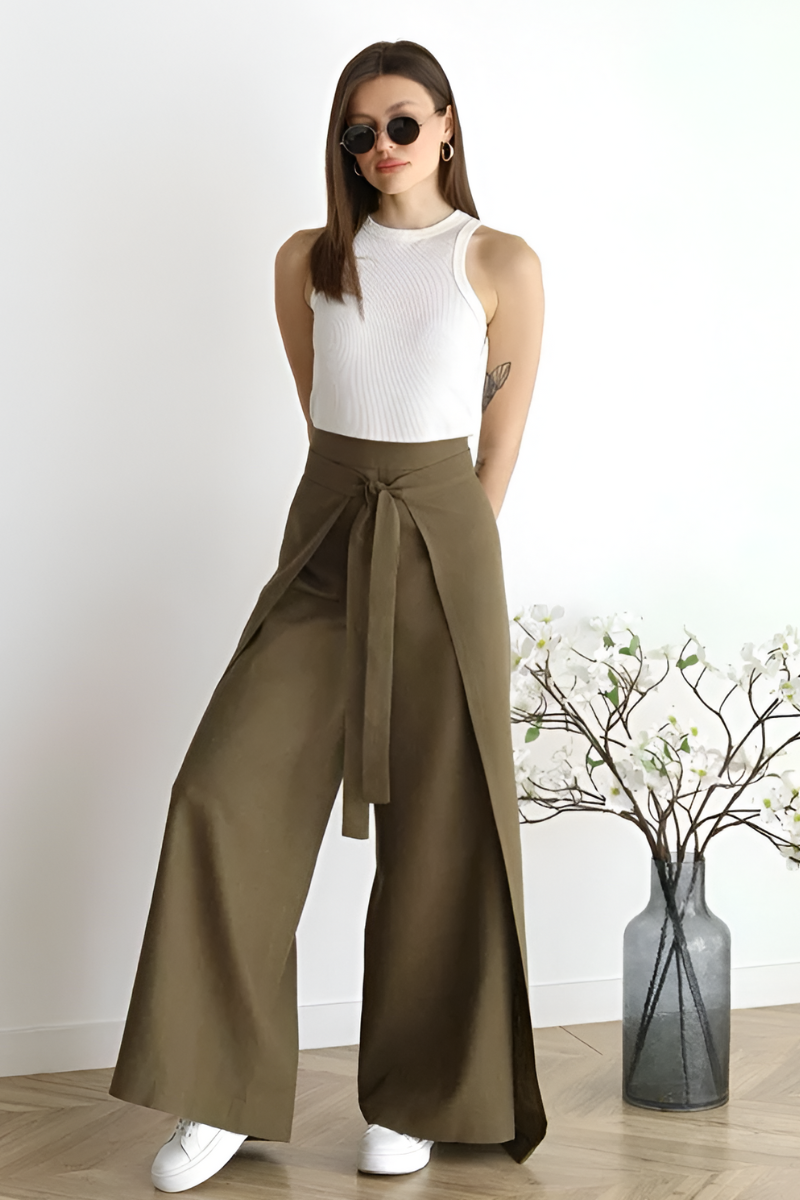 De Milou™ | Broek met Wijde Pijpen is een perfecte keuze voor wie op zoek is naar een stijlvolle én comfortabele look. Gemaakt van een linnenmix en voorzien van een flatterende hoge taille en wijde pijpen, straalt deze broek elegantie en gemak uit – ideaal voor zowel casual als geklede momenten.