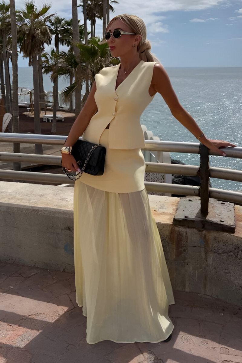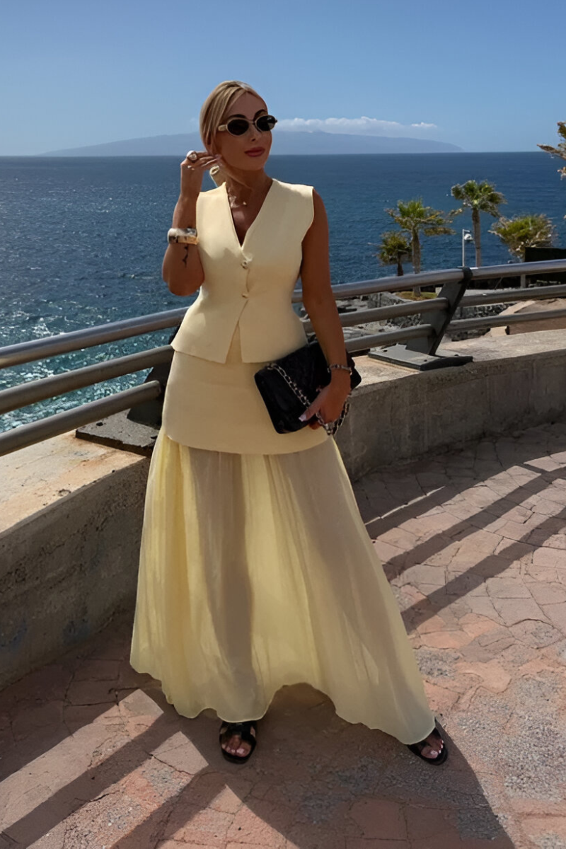 De Tess™ | Casual Rok Set is ontworpen om jouw dagelijkse outfit moeiteloos aan te vullen met functionaliteit en flair. Dankzij het luchtige ontwerp, de flatterende snit en de veelzijdige stijl is deze set perfect voor zowel casual als geklede looks – van een dagje uit tot een avondwandeling.